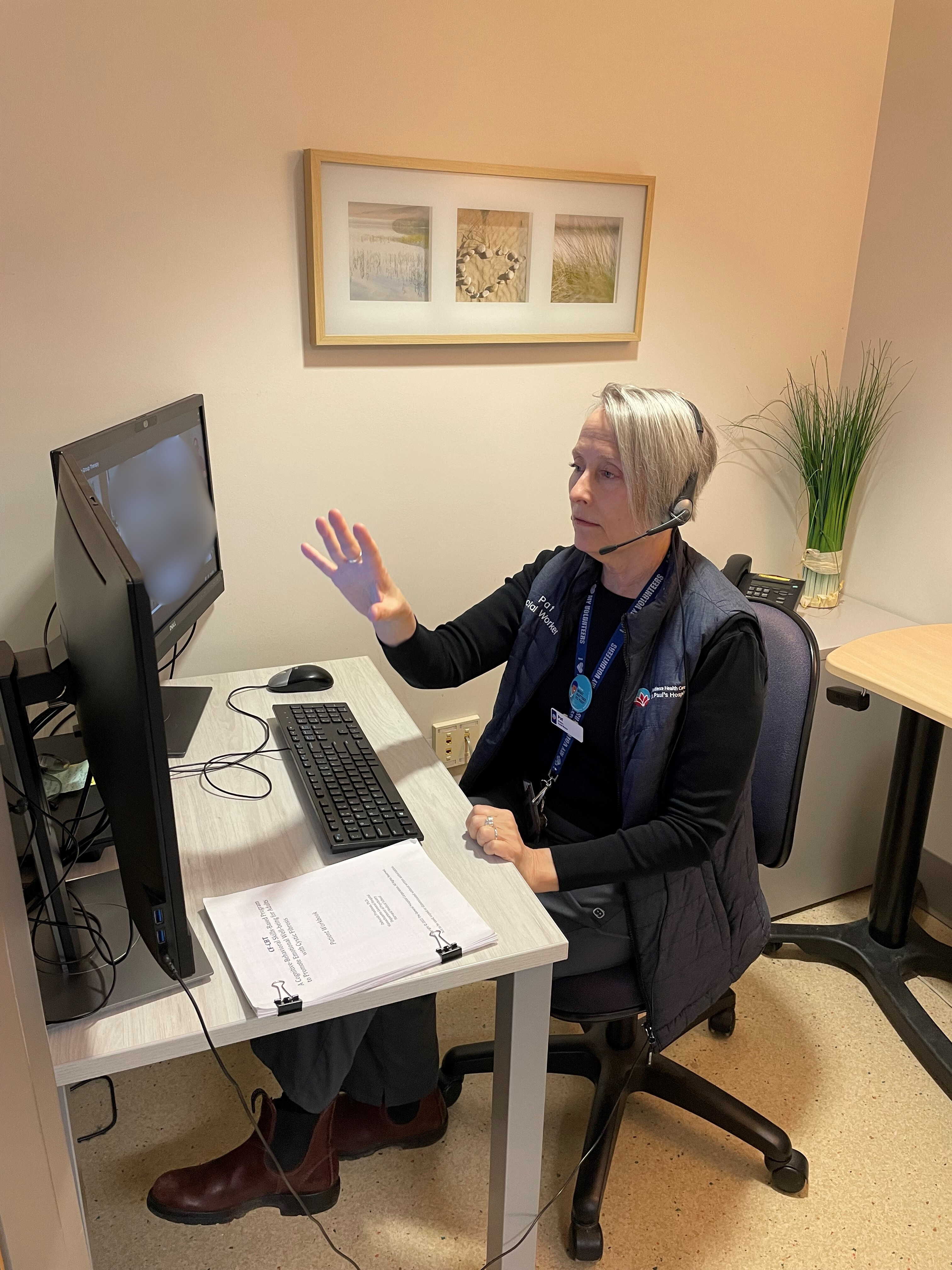 Pat MacDiarmid, a social worker at the St. Paul’s Hospital CF Clinic, co-facilitating a CF-CBT pilot project session.